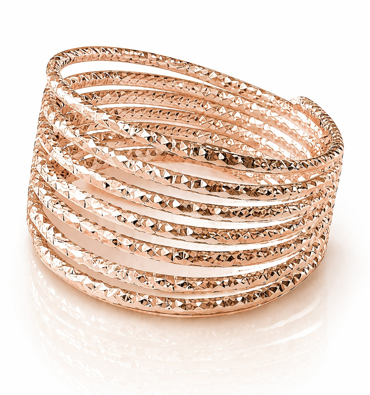 Ses lignes fines et texturées captent la lumière à chaque mouvement pour un effet scintillant unique.